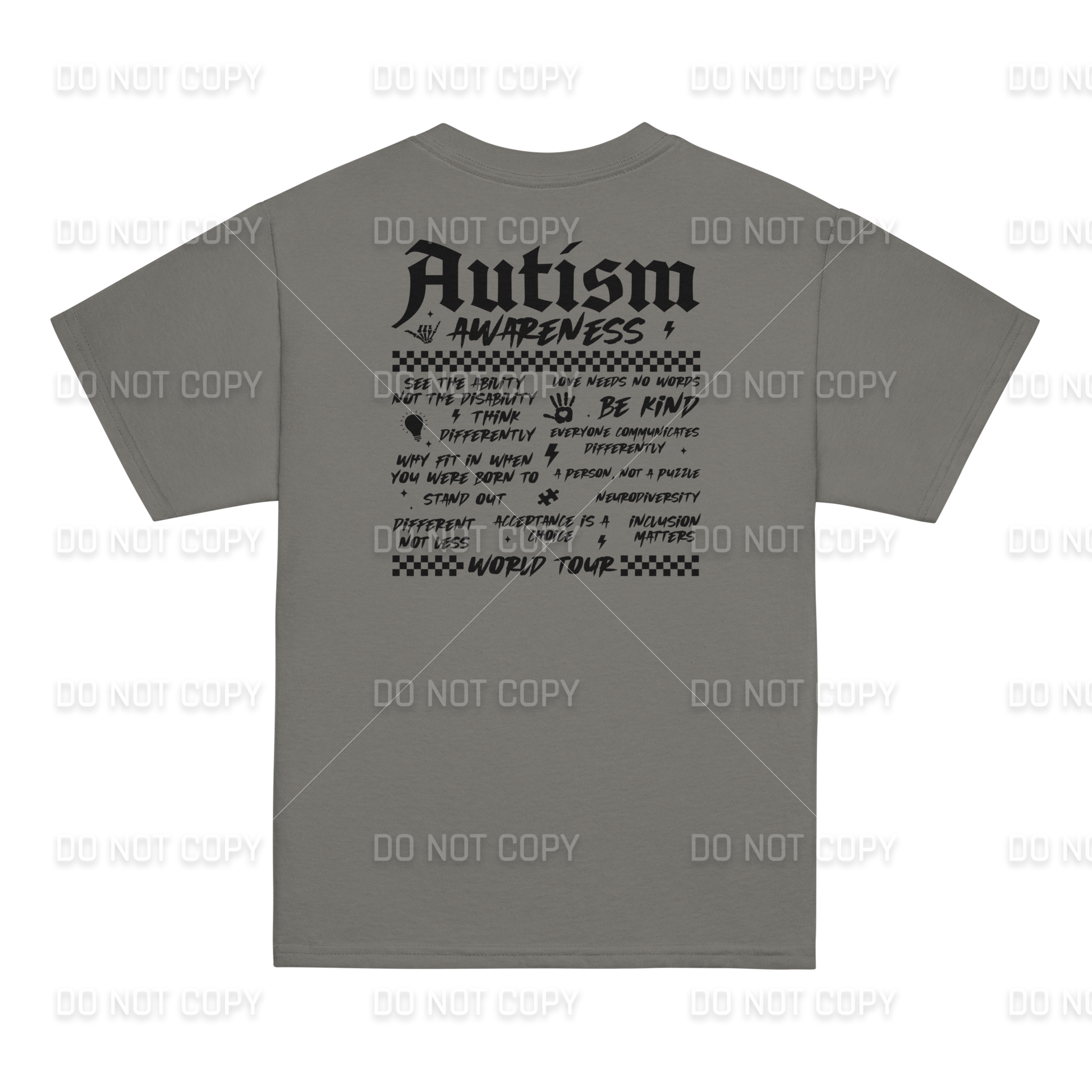 Autism Awareness - Autism World Tour T-Shirt - Black Text - Front & Back Printed - Youth & Adult Sizes